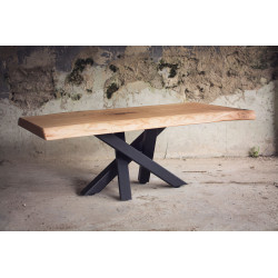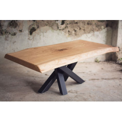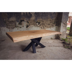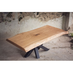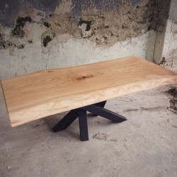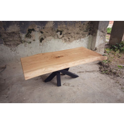 Dubový jídelní stůl z jednoho kusu dřeva s epoxidem a kovovými nohami ve tvaru pavouka