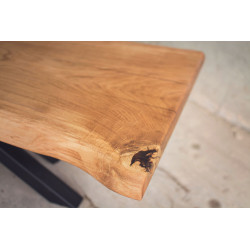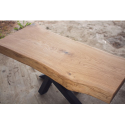 Tento jídelní stůl z masivního dubového dřeva je vyroben z jednoho kusu dubu, což mu dodává výjimečný vzhled s přirozenou kresbou a jedinečnými detaily. Hrany jsou ponechány napřírodno, aby vynikla autentická struktura dřeva. Suky a přirozené nedokonalosti jsou pečlivě vylité epoxidovou pryskyřicí, která zajišťuje odolnost a dlouhou životnost desky.
