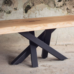 Stůl stojí na stabilních kovových nohách ve tvaru pavouka, které jsou lakovány do černého matu. Tento design dodává stolu moderní vzhled a zajišťuje pevnost i odolnost.