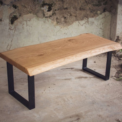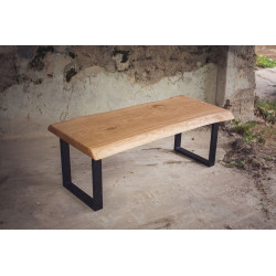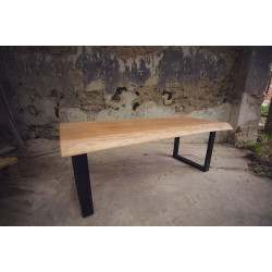Dubový jídelní stůl z jednoho kusu dřeva s epoxidem a kovovými nohami ve čtverce