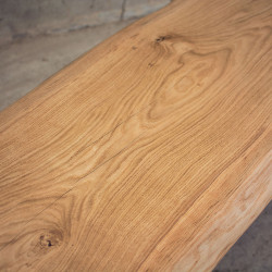 Tento jídelní stůl z masivního dubového dřeva je vyroben z jednoho kusu dubu, což mu dodává výjimečný vzhled s přirozenou kresbou a jedinečnými detaily. Hrany jsou ponechány napřírodno, aby vynikla autentická struktura dřeva. Suky a přirozené nedokonalosti jsou pečlivě vylité epoxidovou pryskyřicí, která zajišťuje odolnost a dlouhou životnost desky.