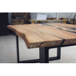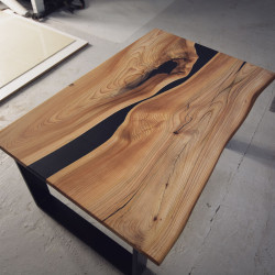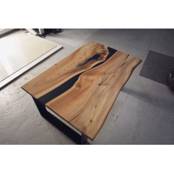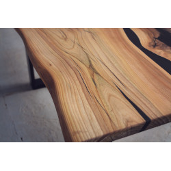 Konferenční stůl z jilmu s černým matným epoxidem a přírodní hranou