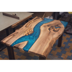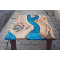 Konferenční stůl z ořechového dřeva s modrým epoxidem Ocean Blue