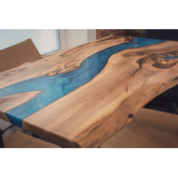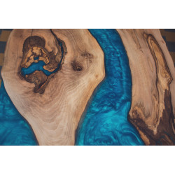 Tento konferenční stůl z masivního ořechového dřeva je jedinečným kusem nábytku, který v sobě spojuje krásu přírodního materiálu a výrazný design epoxidu. Deska stolu je zdobená epoxidovou pryskyřicí v odstínu Ocean Blue, která svou intenzivní modrou barvou připomíná hloubku oceánu. Dřevo je zpracováno tak, aby co nejvíce zachovalo svůj přirozený vzhled a strukturu.