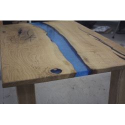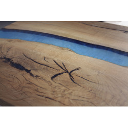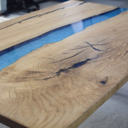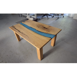 Dubový konferenční stůl s modrým průhledným epoxidem