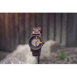 Můžete si různě nakombinovat druhy dřeva na ciferníku i řemínku, zvolit barvu ručiček či typ strojku nebo přidat vlastní logo, text, obrázek či fotku k vygravírování.