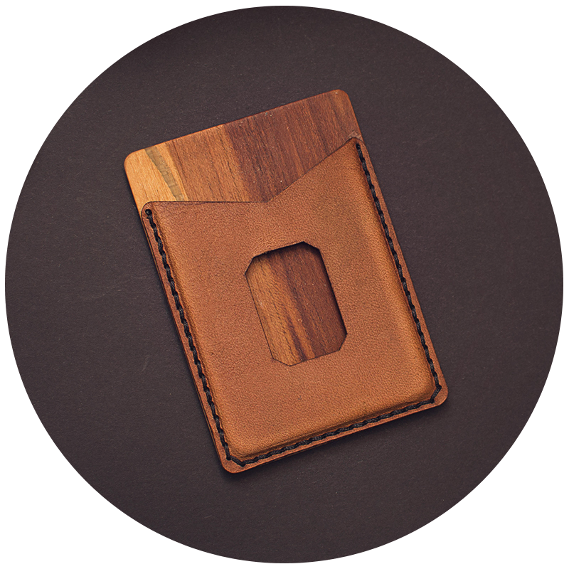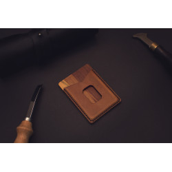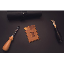 Další stylovka z naší dílny. Kombinace masivní ho dřeva a kůže. Slouží jako vizitkář nebo peněženka na doklady, karty a bankovky.