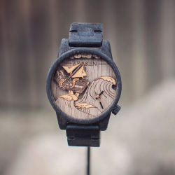 Motiv inspirovaný soubojem lodi na rozbouřeném moři a mýtického stvoření, kterého námořníci nazývali KRAKEN. Vyobrazení je vsazeno do vzácného pouzdra z bahenního dubu, které leželo pod zemí 6-8 tis. let.